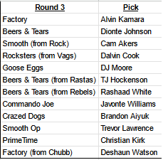 TL: After getting an extra pick from Chubble last round, Factory gambles here and takes Alvin Kamara